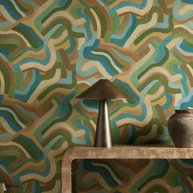 Die Farbgebung der Spiralis Tapete holt sich Inspiration aus natürlichen Pigmenten: Ockergelb, Moosgrün, Rostbraun und erdbraune Akzente wechseln sich nahtlos ab. Diese harmonische Mischung macht das Design zu einem Teil der raffinierten Zamora Kollektion, in der handwerkliche Muster und reiche Texturen im Mittelpunkt stehen.