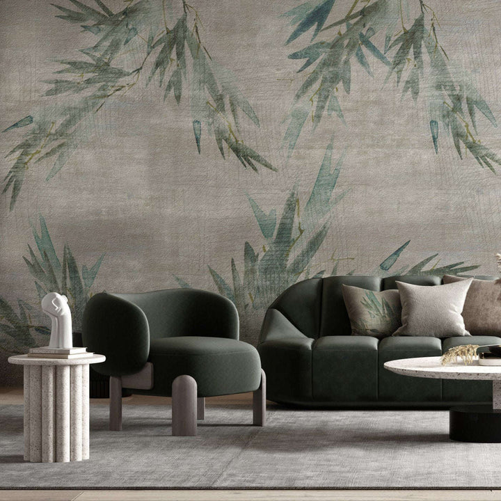 Dragon Tree tapete von INSTABILELAB. Diese individuelle Tapete hat schöne Bambusblätter, die sich über die Wand ausbreiten. Das Design verleiht der Wand ein beruhigendes und orientalisches Aussehen.
