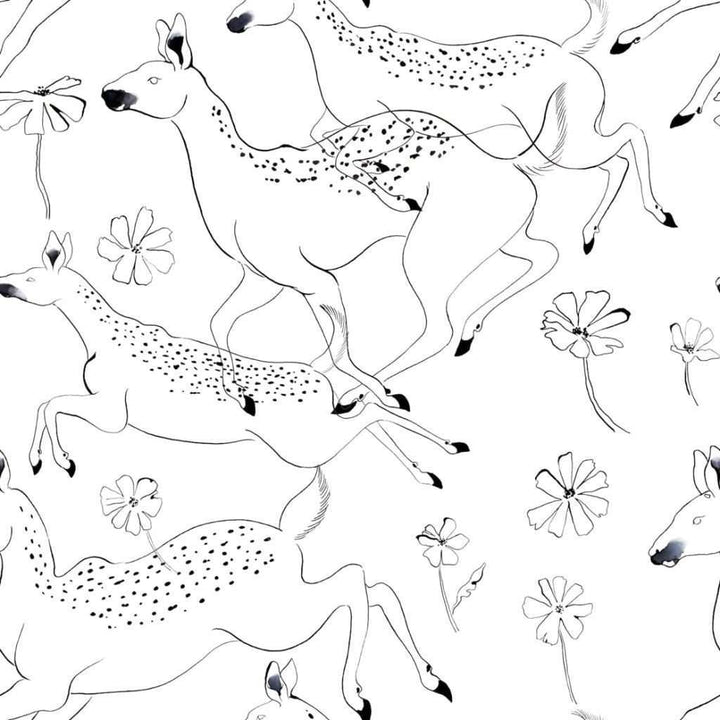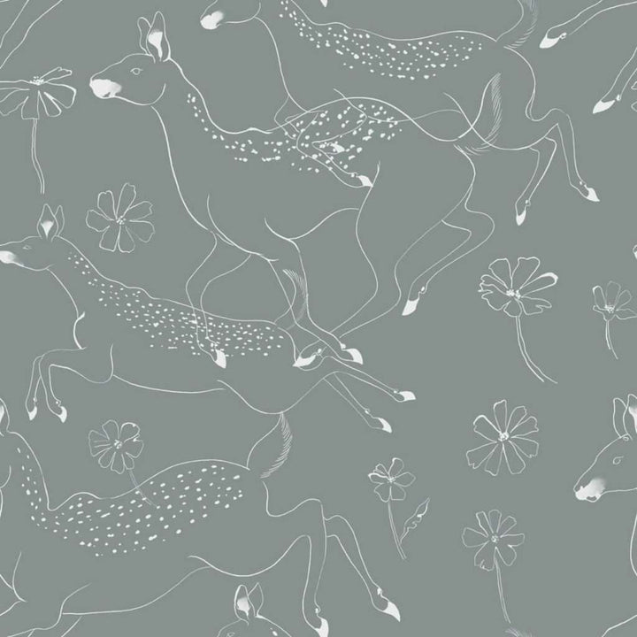 Springende Bambis Kindertapete von Coordonne. Eine Tapete voller frivoler Rehe, die über die Tapete tanzen. Verschönern Sie Ihr Kinderzimmer mit dieser fantastischen Kindertapete von Coordonne.