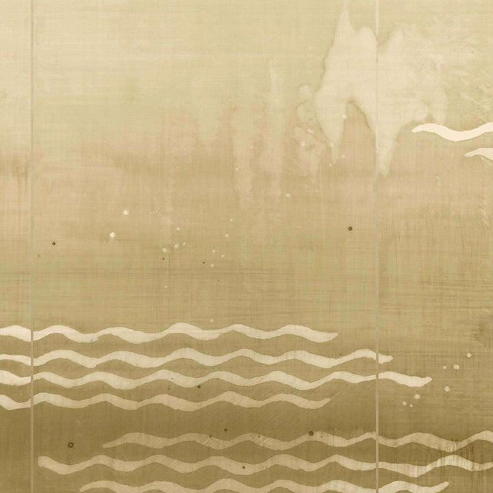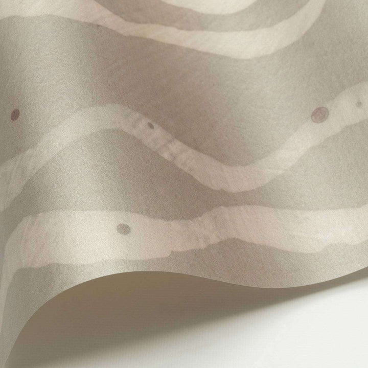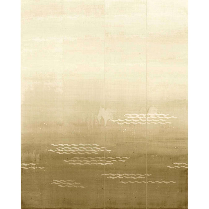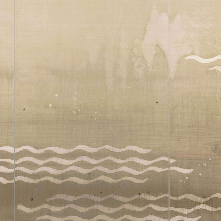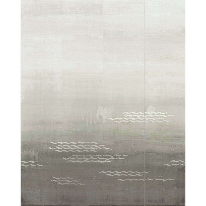 Minawa Tapete von Nobilis. Eine von einem japanischen Sieb inspirierte Panoramatapete mit wunderschönem Glimmerdruck. Sanfte Wellen verleihen der Tapete einen verträumten und eleganten Look. Tapete aus der Panorama Kollektion von Nobilis.