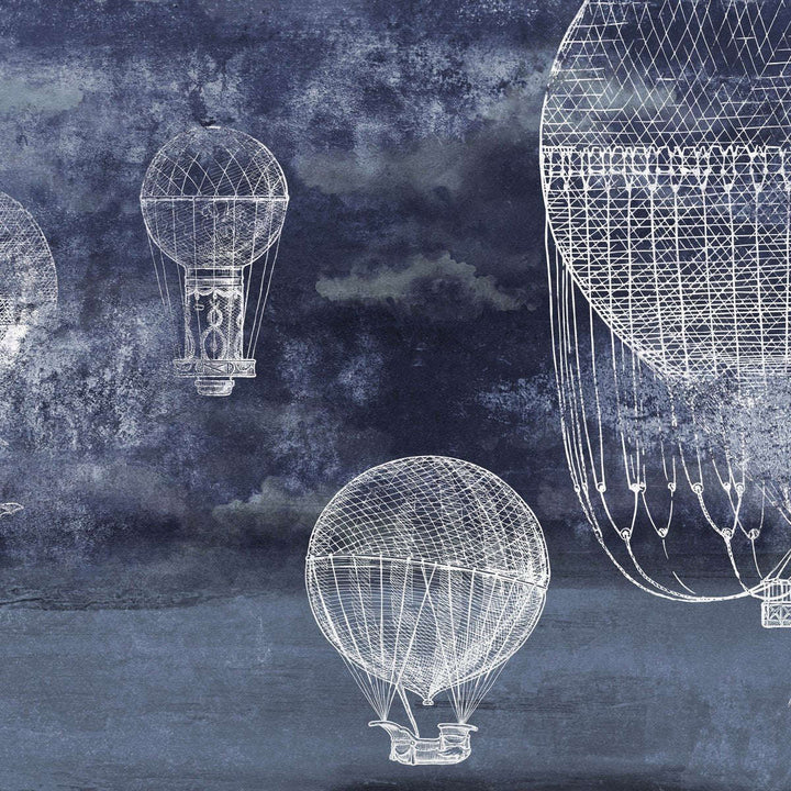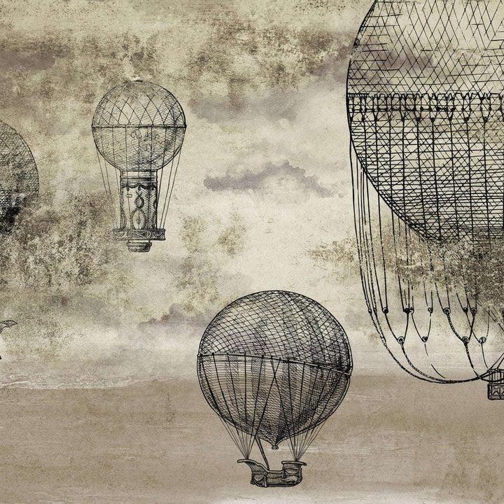 Old Reisetapete von INSTABILELAB. Diese benutzerdefinierte Tapete hat einen authentischen Look mit alten Heißluftballons. Verleiht Atmosphäre und Charakter, wunderbar zum Beispiel für ein Büro.