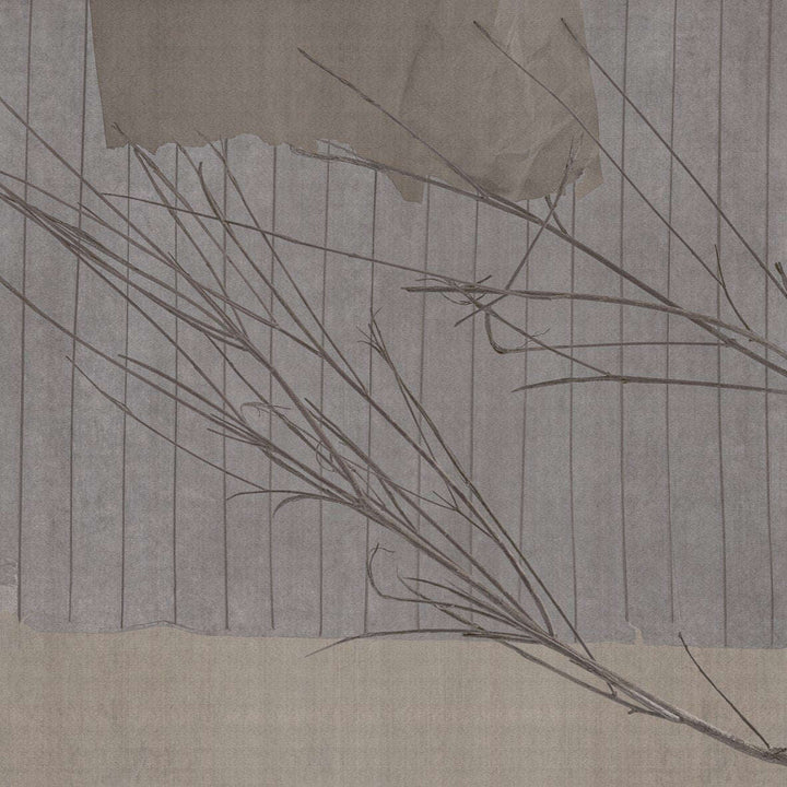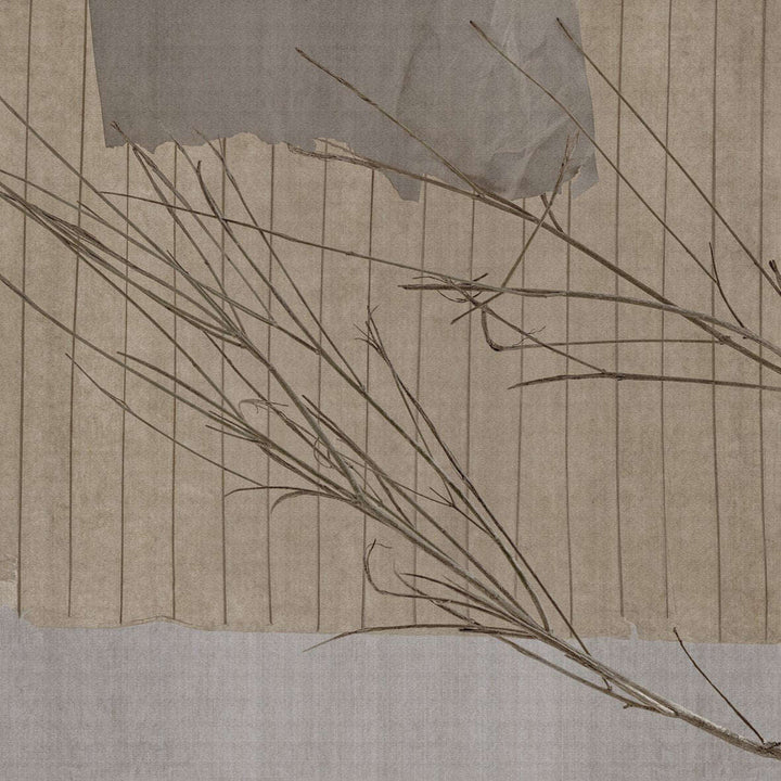 Panacea Badezimmertapete von Glamora. Dieses Badezimmer hat natürliche Töne und Zweige, die sich über die Wand bewegen. Ein natürlicher und atmosphärischer Anblick. Italienische Luxustapete Custom Panacea von Glamora.