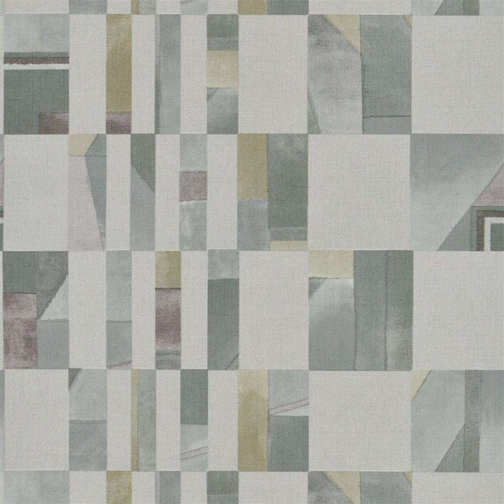 Parterre Tapete von Designers Guild. Diese Vinyltapete ist ein Design mit geometrischen Kacheln und abstrakten Farbblöcken. Der Tapete hat einen strukturierten Effekt in Leinenoptik.