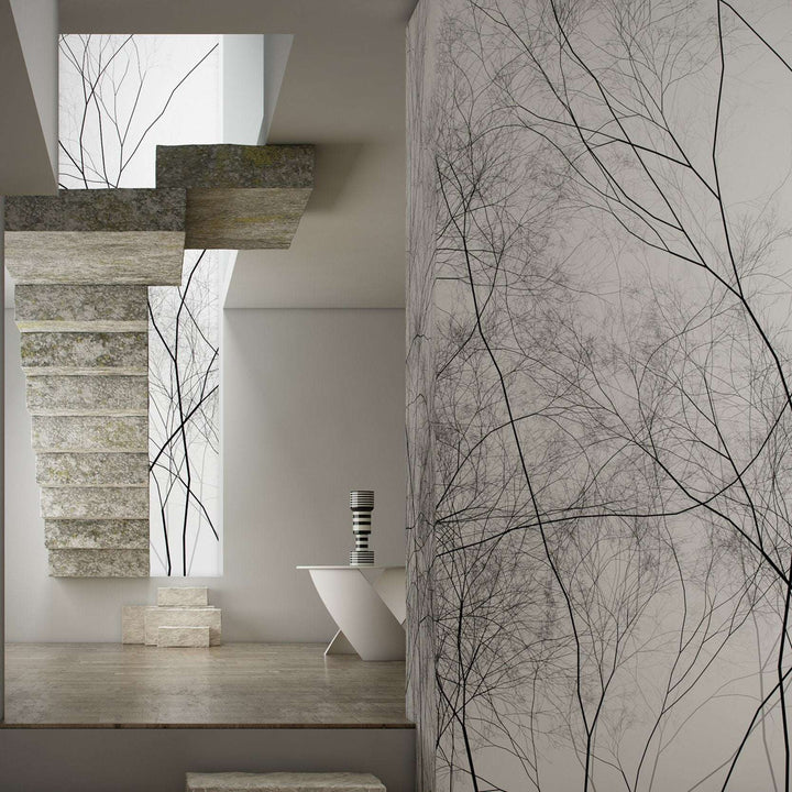 Silva Tapete von Glamora. Diese individuelle Tapete hat attraktive Äste, die sich über die Wand ausbreiten. Es entsteht eine schöne Tiefe. Ein attraktiver Hingucker im Design von Holger Lippmann. Italienische Luxustapete Custom Silva von Glamora.
