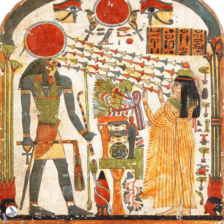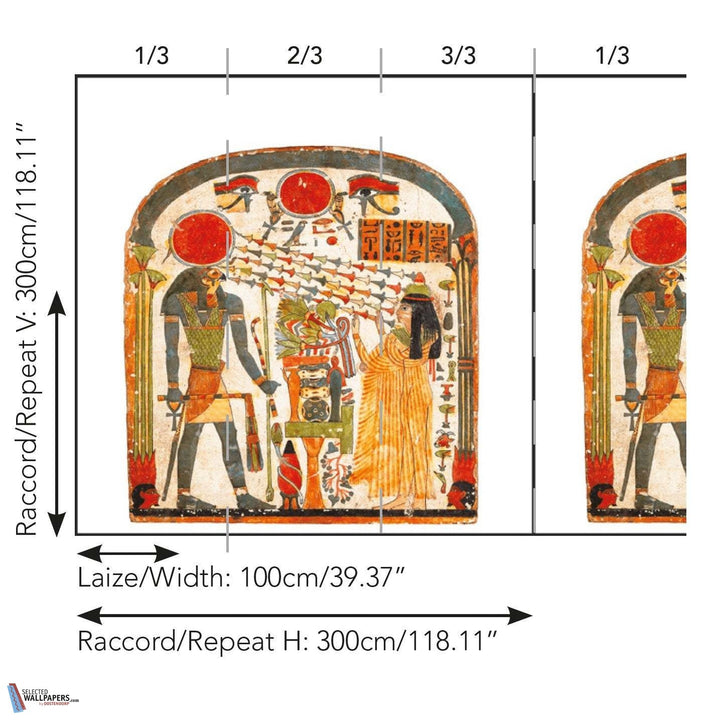Taparet Tapete von Pierre Frey. Diese Tapete ist eine Reproduktion gemalter Holzzeichnungen zu Ehren des Gottes. Tapete Taparet aus der Kollektion Merveilles D'Egypte von Pierre Frey.