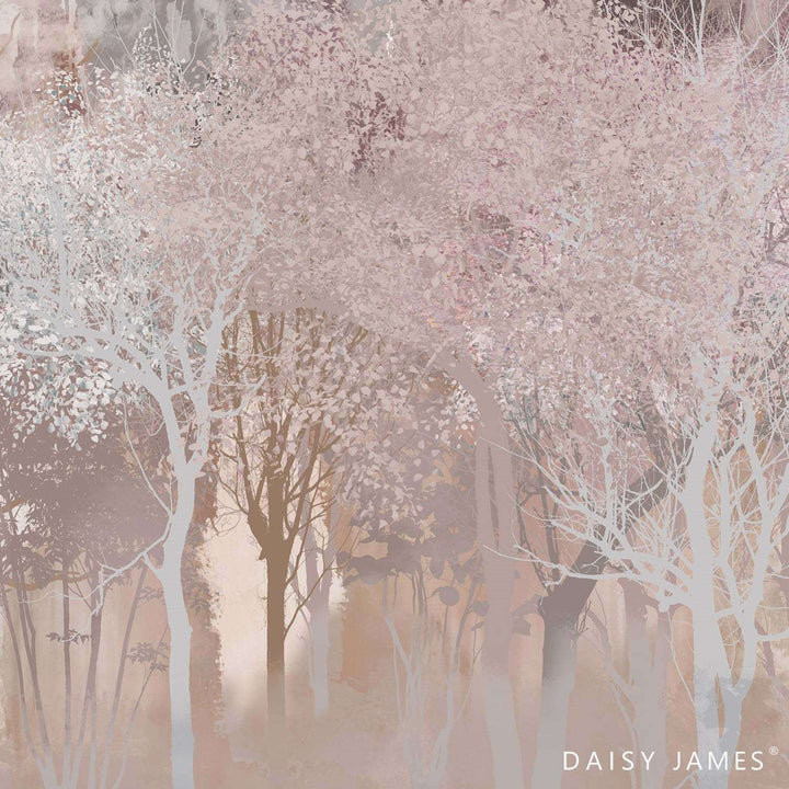 Die Sunset tapete von Daisy James. Diese maßgeschneiderte tapete ist wie ein wunderschöner Sonnenuntergang in einem rosafarbenen Wald. Sublime Töne und elegante Bäume verleihen dieser tapete eine ruhige Ausstrahlung. Maßgeschneiderte tapete von Daisy James, erhältlich auf Vinyl oder vollständig nahtlos auf Seamless Vinyl oder Pro Textile. Maßgeschneiderte tapete The Sunset von Daisy James.