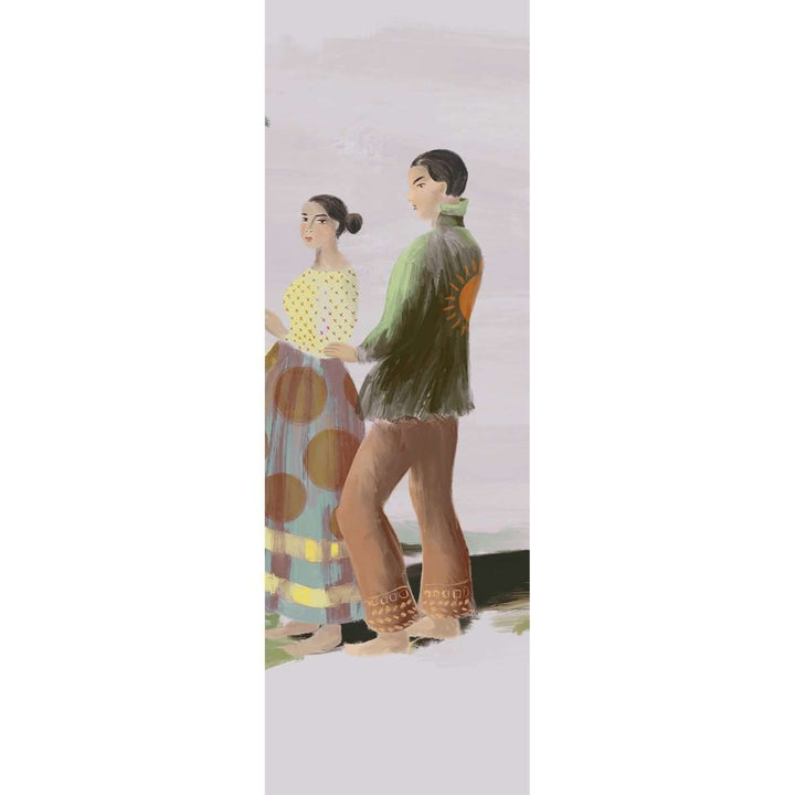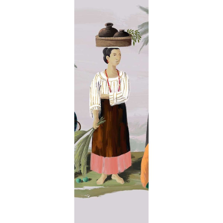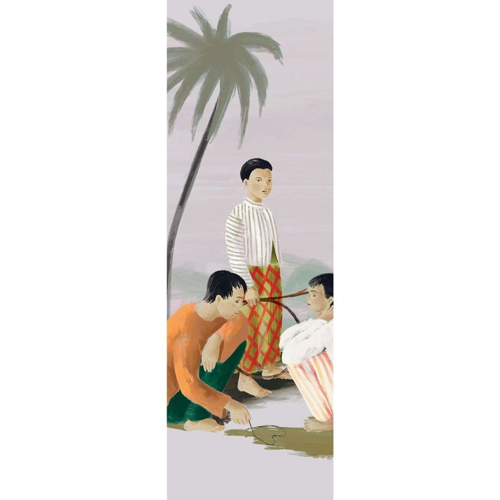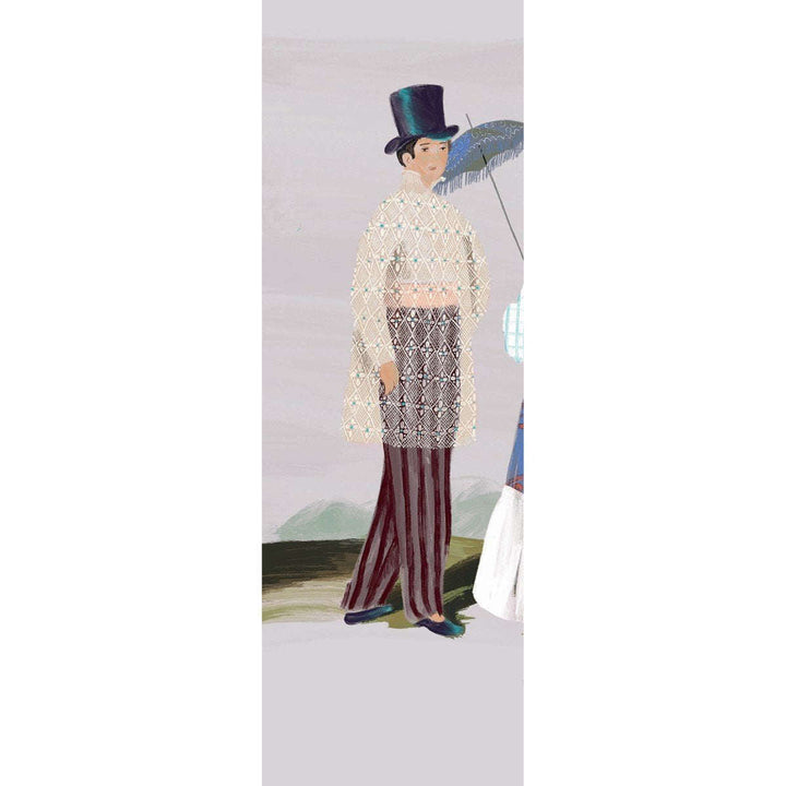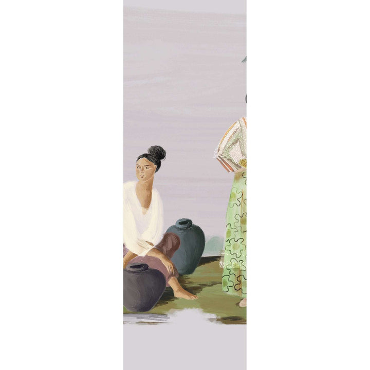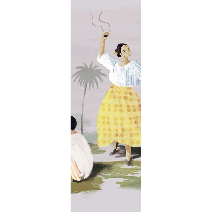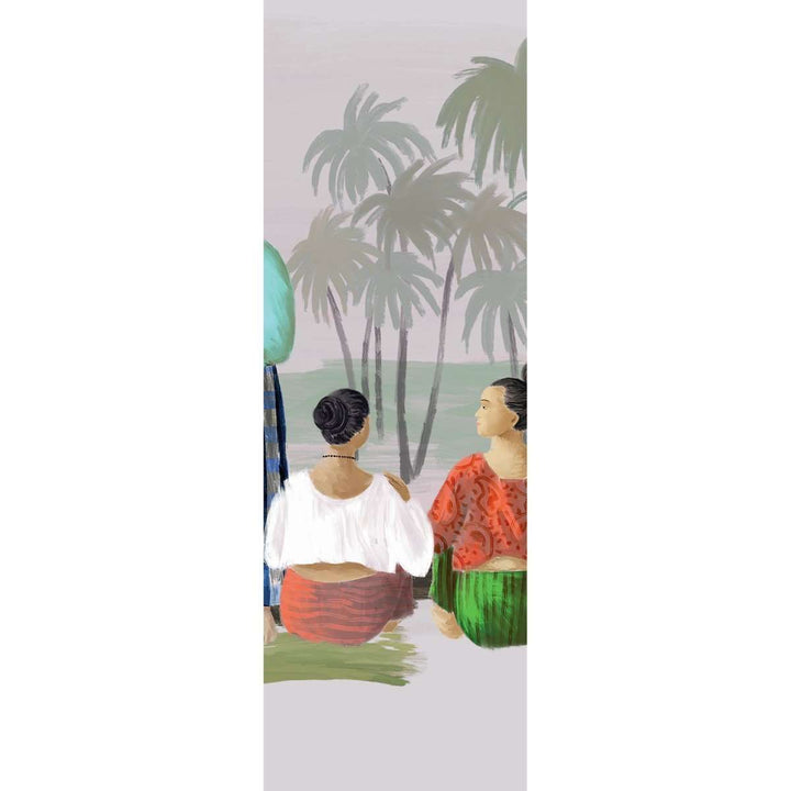 Panoramique Un Beau Dimanche von Elitis. Diese Panorama Tapete aus der 360 Kollektion ist ein Sommerpanorama voller farbenfroher Charaktere.