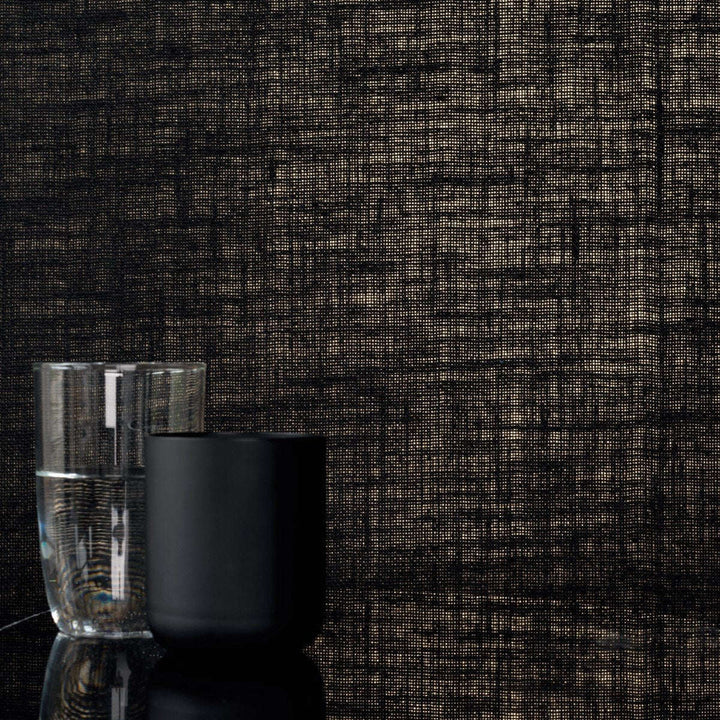 Wishlist tapete van Elitis. Dit textiel tapete is geweven van 100% jute in een diepe zwarte kleur. Een natuurlijk wandbekleding met ongekende verfijning. Een warm tapete voor elk interieur.