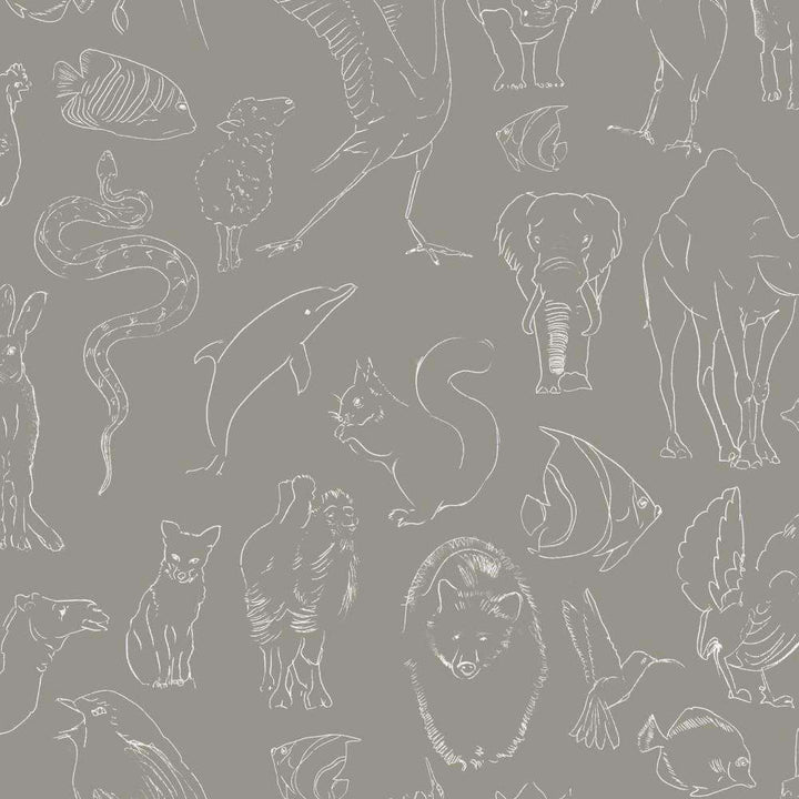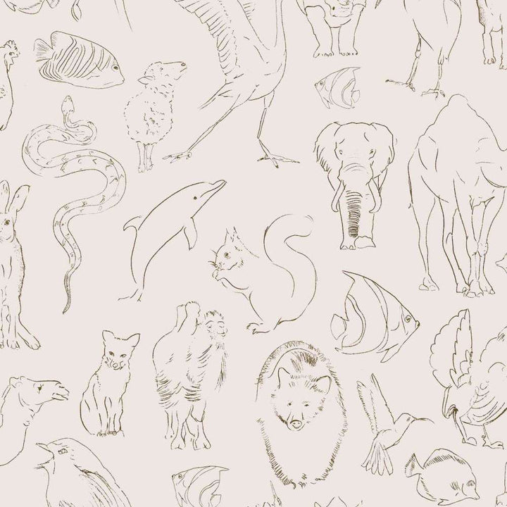 Zoology Kindertapete von Coordonne. Eine Tapete voller gezeichneter Tiere. Verschönern Sie Ihr Kinderzimmer mit dieser fantastischen Kindertapete von Coordonne.