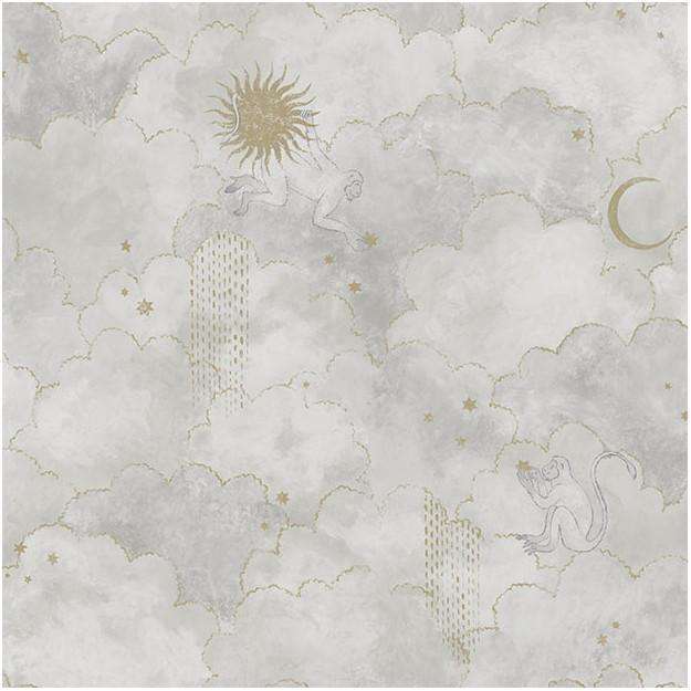 Stars and Monkeys-behang-Tapete-Les Dominotiers-Grey Blue-Rol-AFDC204/3-Selected Wallpapers