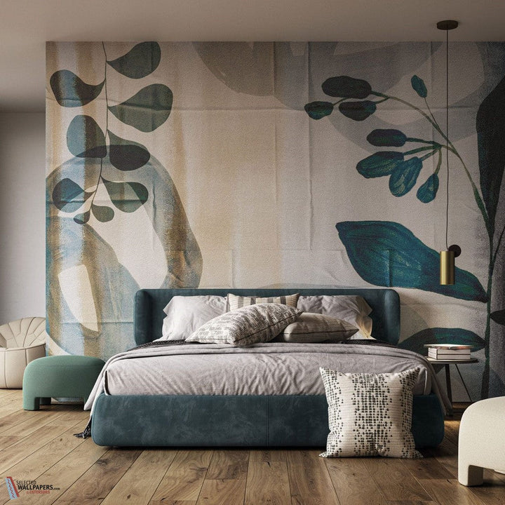 Belmont-Tapete INSTABILELAB. Diese maßgeschneiderte Tapete zeigt ein einzigartiges Design mit riesigen Pflanzen, das an die Schönheit der Natur erinnert. Durch die Falten im Hintergrund erhält die Tapete einen 3D-Effekt. Tapete Belmont INSTABILELAB Avenue Tapetenkollektion.