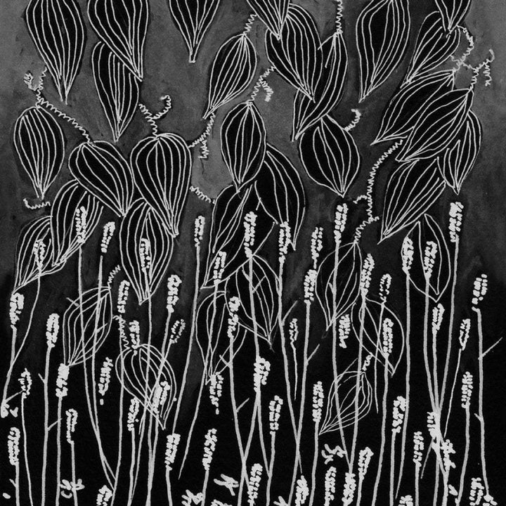 Better Then Ever Tapete Wall & Deco. Benutzerdefinierte Tapete mit stimmungsvoller Vegetation aus Blättern und Federn auf einem ruhigen, ruhigen Tapete. Tapete Better Then Ever Ines Porrino 2019 Wall & Deco.