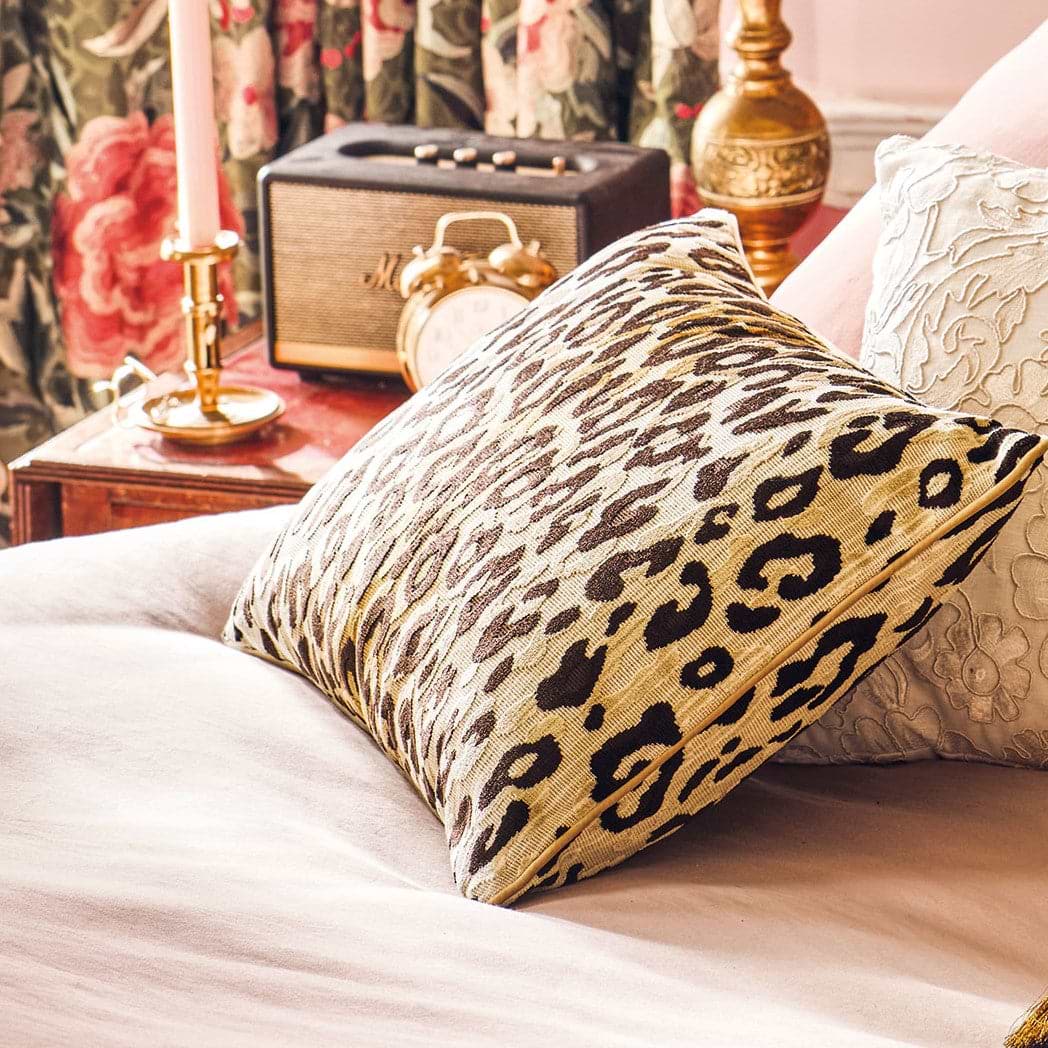 Mimi Velvet Kussen Romo. Een kussen gemaakt met de Mimi Velvet stof. Een kussen met luipaarden vlekken, deze dierenhuid spreekt tot de verbeelding! Kussen Mimi Velvet Temperley London X Romo collectie.