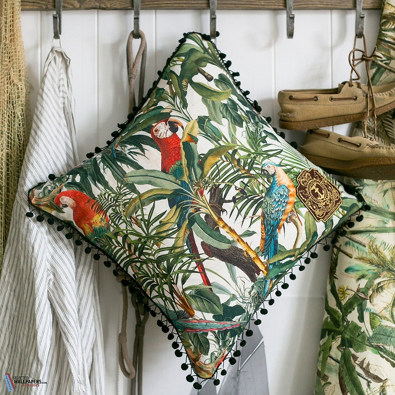 Parrots of Brasil kussen Mind the Gap. Een kussen gemaakt met de Parrots of Brasil stof, een jungle print met papegaaien. De achterkant is van dezelfde stof. Kussen Parrots of Brasil Linen Mind the Gap.