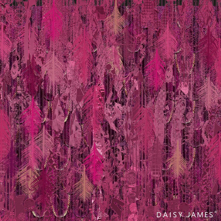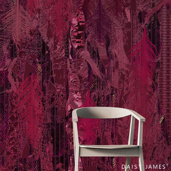 The Panache exclusive wallpaper by Daisy James. A wallpaper full of old feathers artistically displayed in a pink aubergine hue. Like art on the wall! This wallpaper is custom-made.