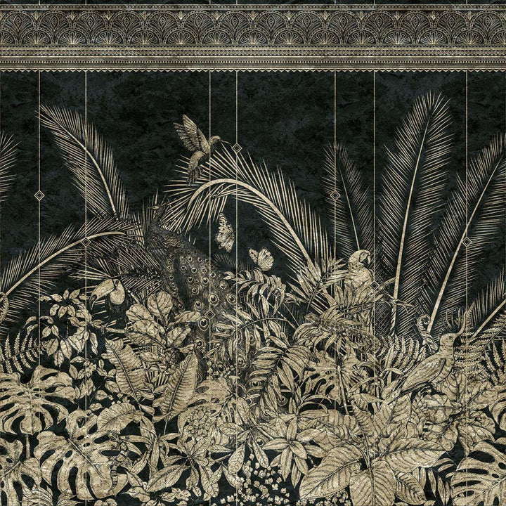 Tampura wallpaper from Inkiostro Bianco. This wallpaper from the Goldenwall collection is produced on Gold Leaf. A beautiful foil (gold or rose) is used in this material to accentuate elements. It results in a stunningly beautiful and uniquely luxurious custom wallpaper.