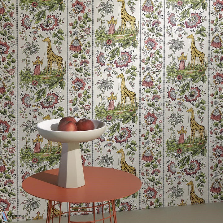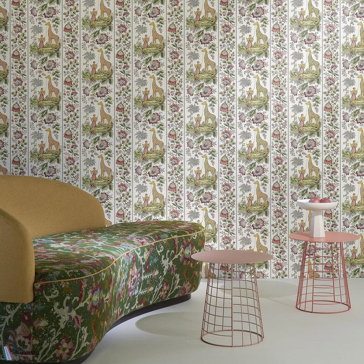 Ismaelia wallpaper Pierre Frey. This wallpaper is an extraordinary event of decorative arts full of decorative flowers, giraffes. A reproduction from around 1830. Wallpaper Ismaelia Pierre Frey Les Dessins 6 collection.