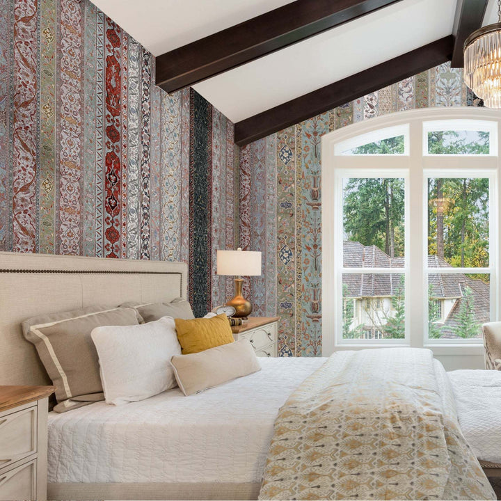Rumi wallpaper Iksel. This wallpaper has a Persian design and is inspired by one of the oldest rooms with wooden panels in the East. It was originally in a house called Beit Wakil in 17th-century Aleppo. Wallpaper Rumi Iksel Decorative Arts.