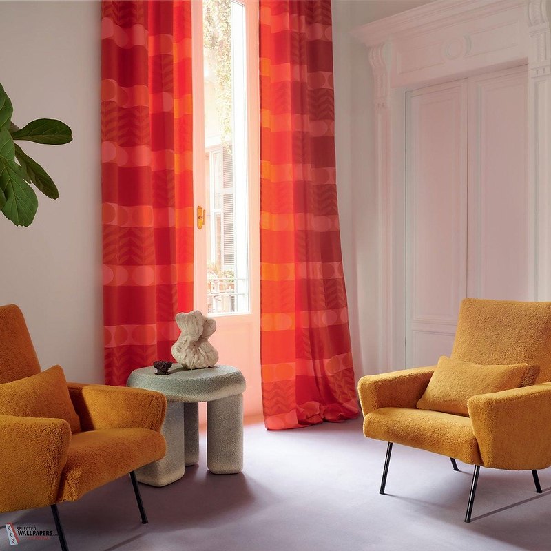 With its striking diagonal stripes and typographic elements, the Holly fabric immediately gives identity to a space. The pattern fits excellently in playful, eclectic or urban-chic interiors. Think of bold chairs, cushions or a statement armchair that catches the eye. The combination of geometry and numbers creates a distinctive, almost graphic-industrial character that gives your interior personality.