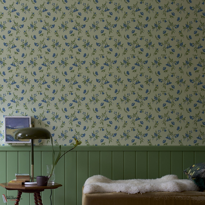 Auguste wallpaper by Farrow & Ball. This wallpaper shows a delicate pattern with frivolous flowers. Wallpaper Auguste Farrow & Ball The Purnon Papers wallpaper collection