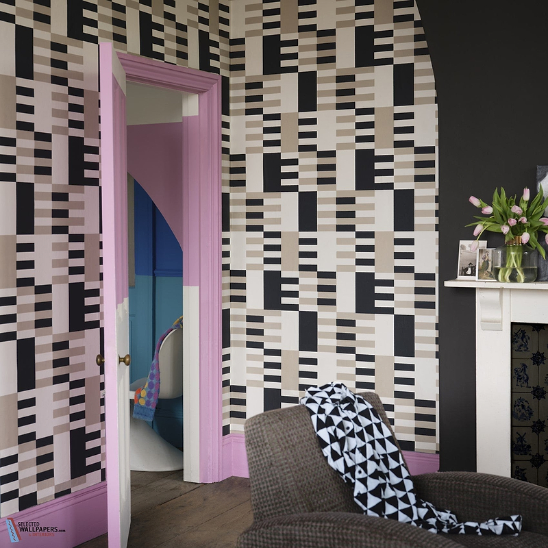 Check out wallpaper Farrow & Ball. This wallpaper shows a bold Bauhaus inspired geometric design. Wallpaper Check Farrow Ball Latest & Greatest collection.