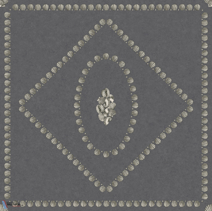 Conchiglie wallpaper Cole and Son. This wallpaper has a geometric pattern of shells. Fornasetti used shells to decorate the walls of his dining room. Wallpaper Conchiglie Cole & Son Fornasetti Senza Tempo II collection.
