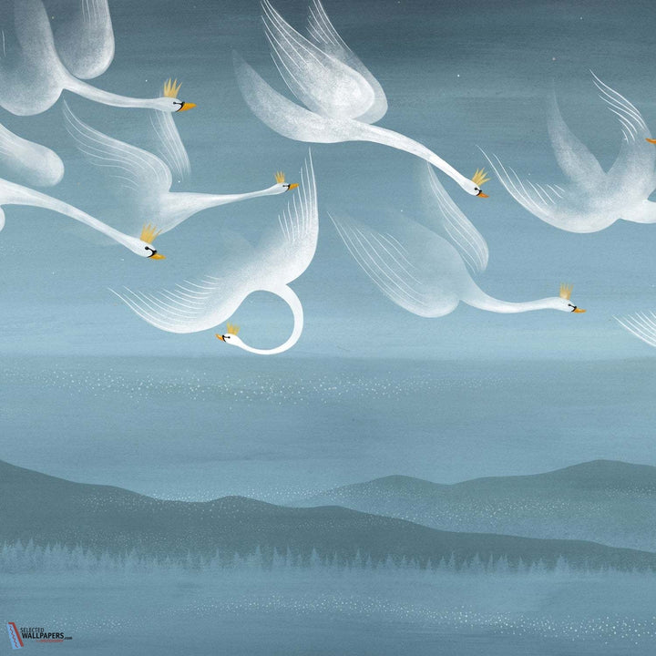 Onze Cygnes Sauvages-behang-Tapete-Les Dominotiers-Blue-Non Woven 70 cm-DOM809-Selected Wallpapers