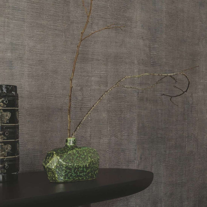 Mako wallpaper from Nobilis. This wallpaper is like a beautiful animal skin. A refined relief with a luxurious appearance. Presented in metallic shades like gold, this wallpaper gives your interior warmth.