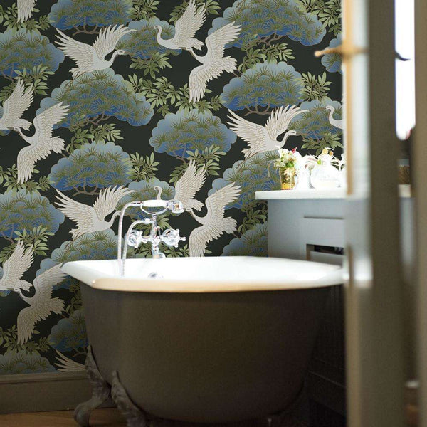 In Japan, cranes symbolize happiness and longevity. Crane wallpaper adds grace and movement to a room. In soft pastels, it works subtly and romantically; in ink blue or black and gold, it becomes a chic statement.