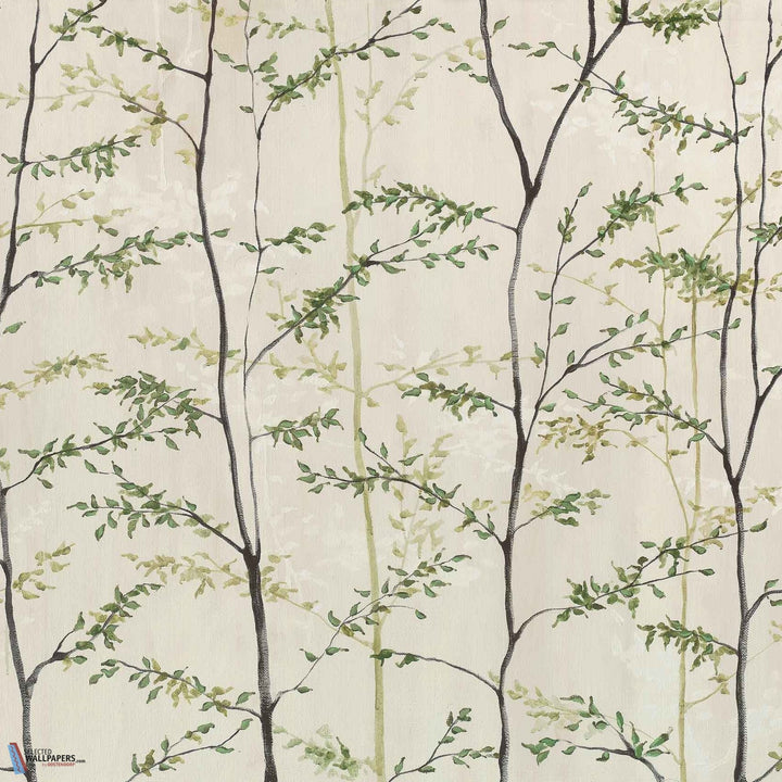 Woods wallpaper Coordonne. This wallpaper shows a subtle and beautifully painted forest full of details in the leaves. Calm and subtle. Wallpaper Woods Coordonne Random Chinoiseries II collection.