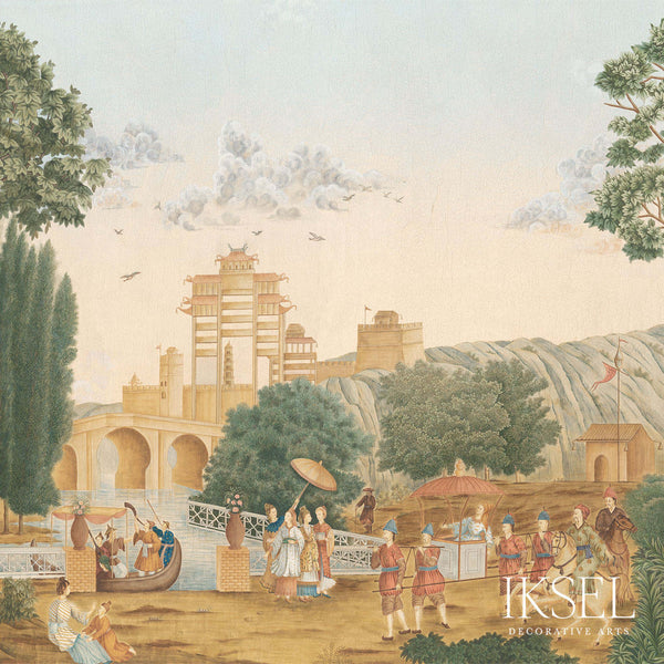 Oriental wallpaper is inspired by Asian art and culture and features motifs such as cranes, cherry blossoms, landscapes, symbolic patterns, and decorative elements from China and Japan, among other places. The designs range from refined illustrations to rich narrative scenes.
