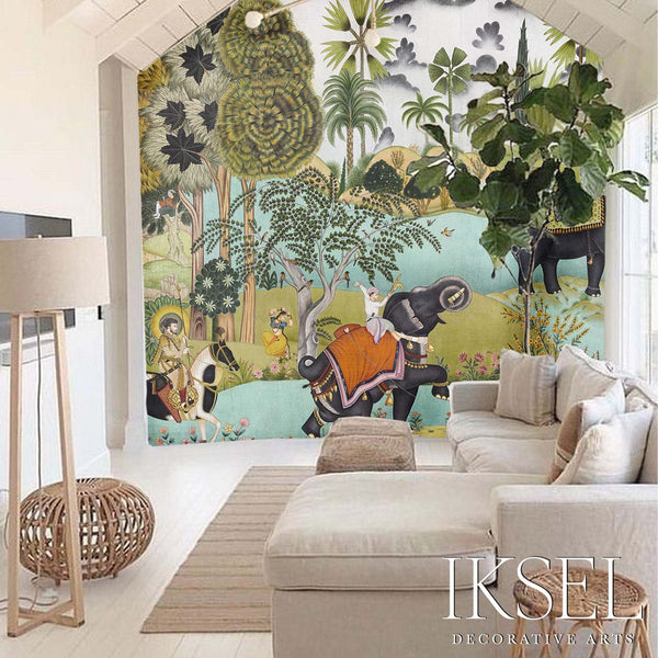 • Living room: chinoiserie or mountain landscapes as a stylish eye-catcher behind the sofa.