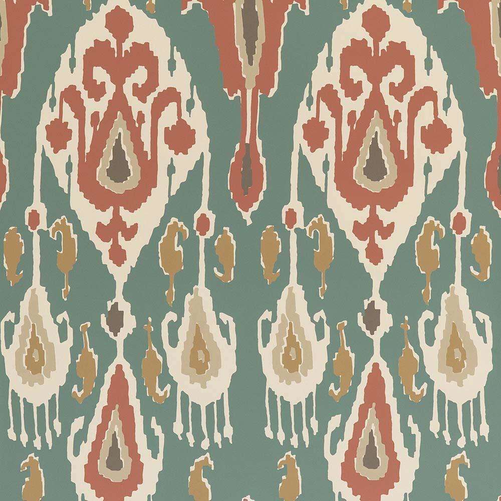 Ikat Bokhara wallpaper from GP&J Baker. This wallpaper comes from the archive, the original dates back to 1906. A traditional ikat design in classic colors.