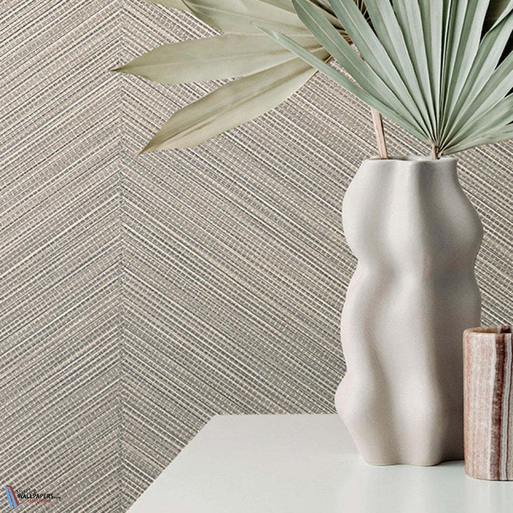 Musa wallpaper from Texam Wall Masters. This ecological wallpaper is made from grass fabric and features a herringbone pattern. Sustainable, neutral, and elegant for any interior. Wallpaper Musa Texam Wall Masters Sustainable collection