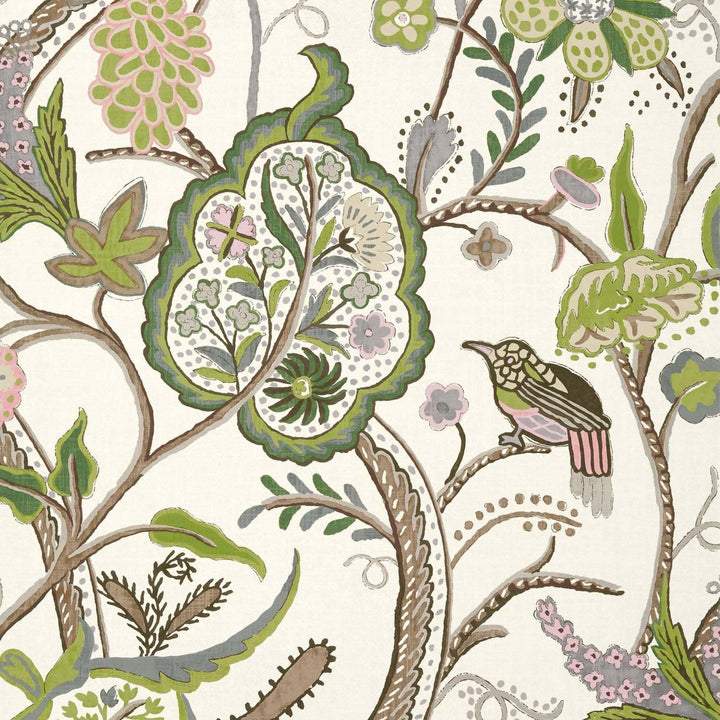 Windsor wallpaper Thibaut. This wallpaper features a colorful botanical print. Flowers and birds full of details. Wallpaper Windsor Thibaut Canopy collection.