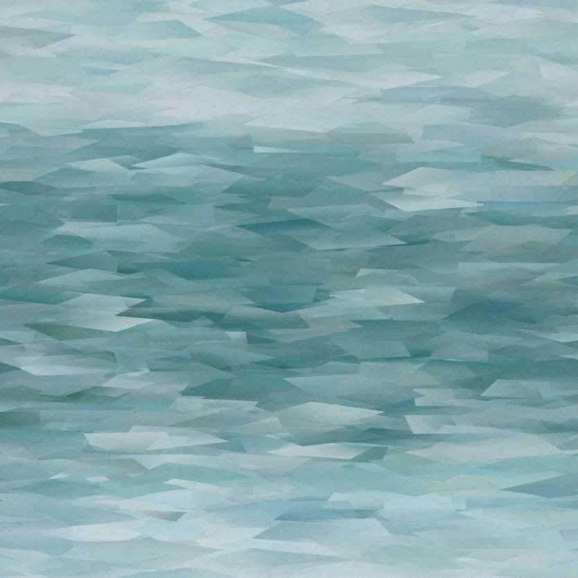 Watercolor crystal shards create reflections that gently touch the water with subtle vignettes of dark and light ombré stripes. In contemporary shades of heather, mineral, blue twilight, and caramel.