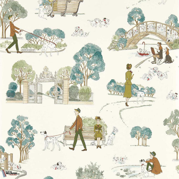 101 Dalmatians wallpaper Sanderson. This wallpaper shows the characters from the 101 Dalmatians. A botanical and cheerful tribute to this Disney legend. Wallpaper 101 Dalmatians from the Disney Home x Sanderson collection.