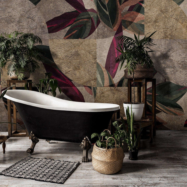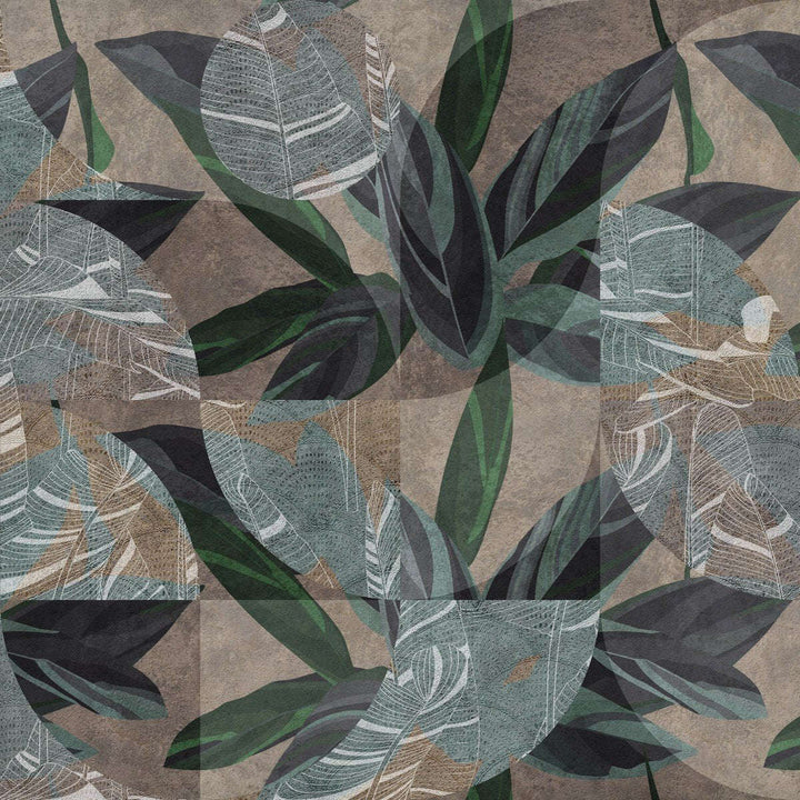 Armonia wallpaper by INSTABILELAB. This custom wallpaper features natural leaves in various warm shades. Combined with graphic effects, it creates an exciting and atmospheric wallpaper.