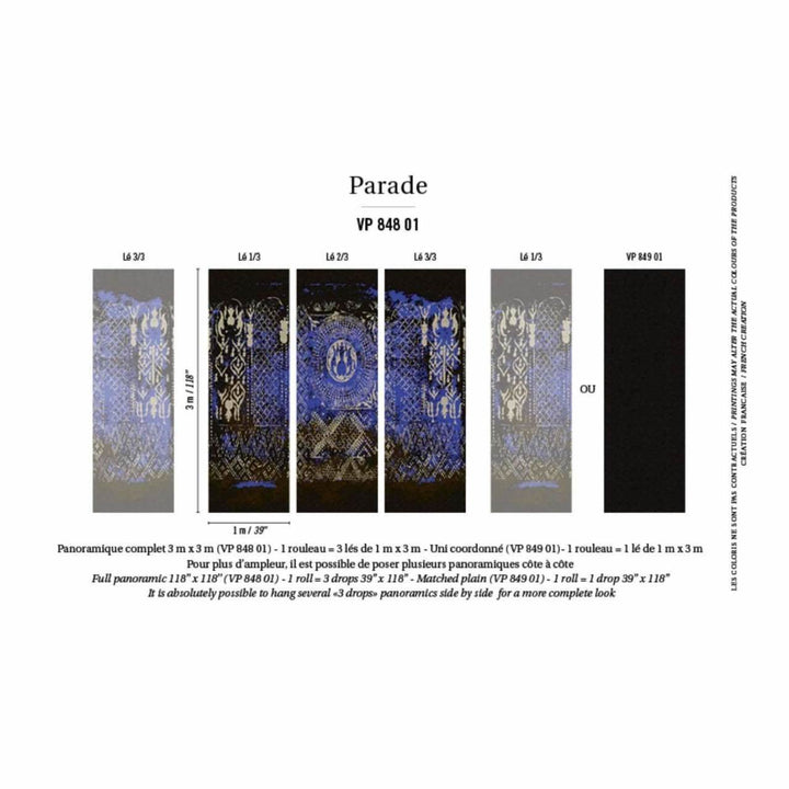 Bazaar luxury wallpaper from Elitis. A wallpaper with a mosaic background and a striking design. The wallpaper is available in a panel set of 3 panels, and can optionally be expanded with a plain solid.