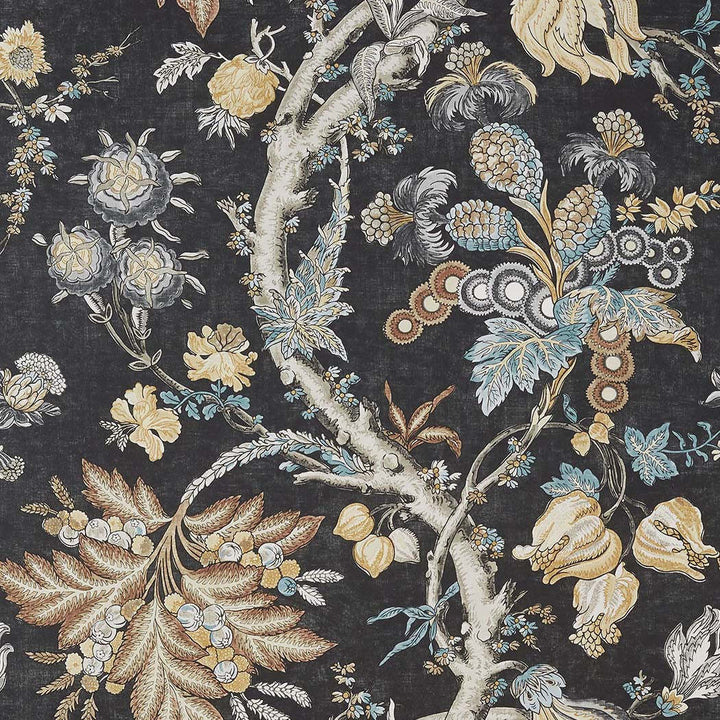 Chatelain wallpaper from Thibaut. This wallpaper shows a floral motif in deep rich tones. Luxurious flowers reproduced on a large scale from a French document from the late 1800s. Wallpaper Chatelain Thibaut from the Heritage collection.