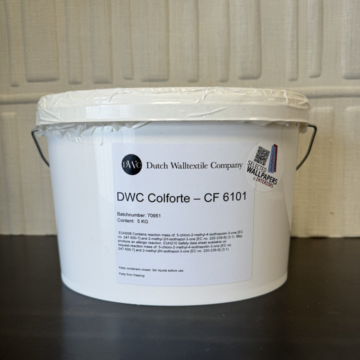 Colforte wallpaper adhesive from the Dutch Walltextile Company (DWC) is specially developed for the professional application of all DWC wallcoverings. This high-quality, ready-to-use water-based adhesive ensures a strong, durable bond and a perfectly smooth finish—ideal for luxury wall textiles, vinyl, and specialty DWC collections.