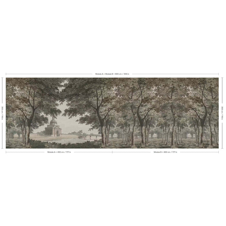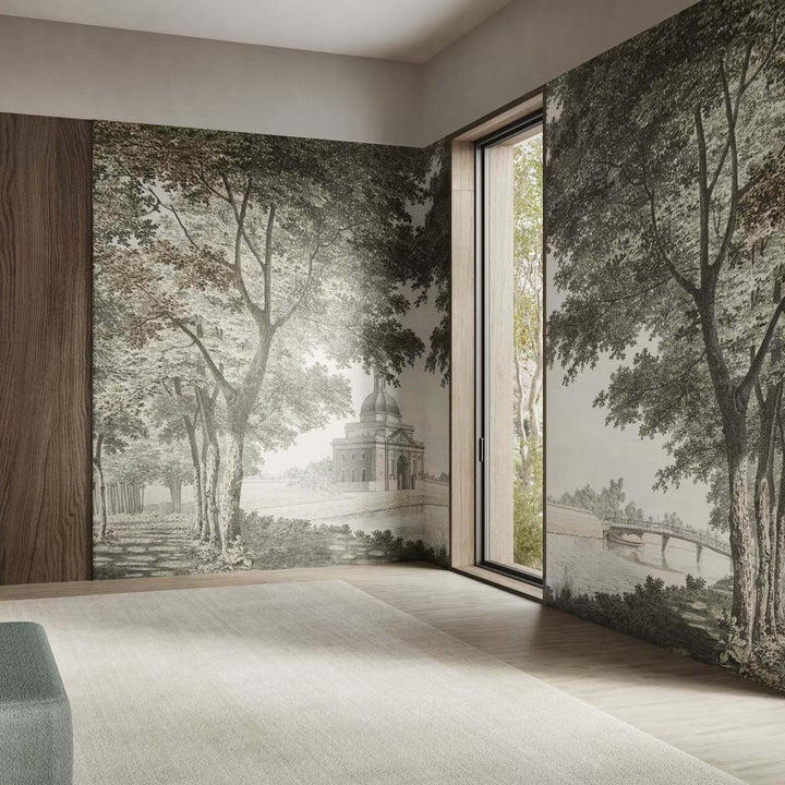 Costantinople wallpaper from Glamora. This custom wallpaper is a fascinating panorama. Trees that seem to stretch into infinity with a dome in the distance. Wallpaper Constantinople Glamora Creative Collection Chapter XIII.