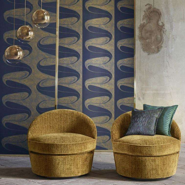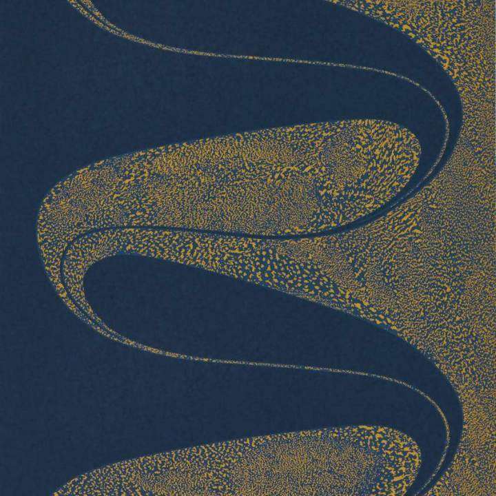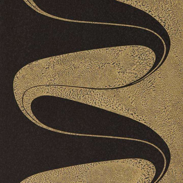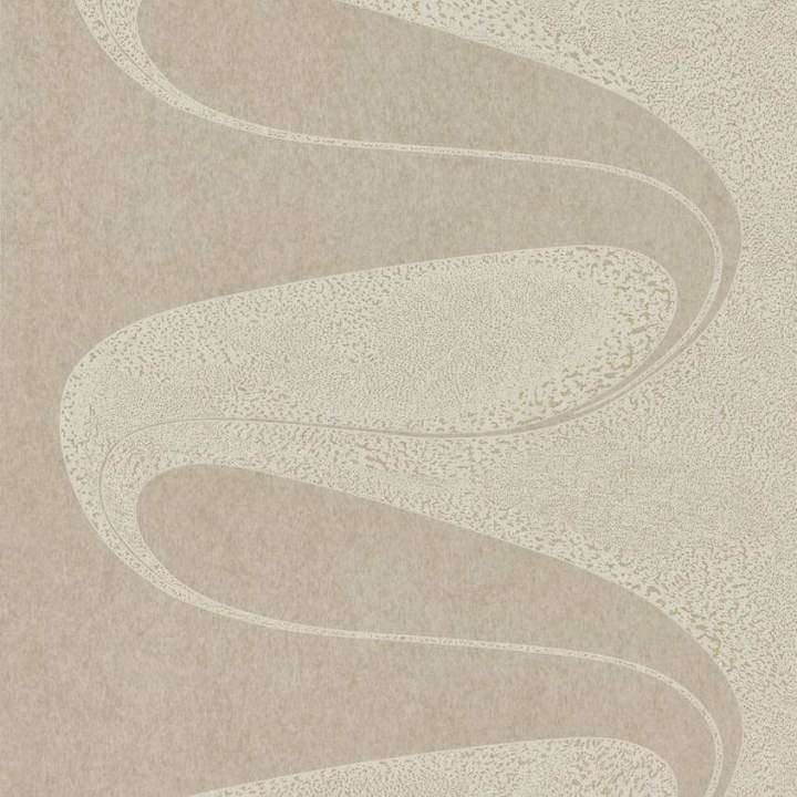This fluid and spontaneous motif evokes the playful atmosphere of Art Deco with its curving lines, elegant curves, and marbled shapes printed in a mix of metallic inks on fibrous paper to enhance the sense of movement. This uniquely designed wallpaper can be hung in multiple ways; straight match, half drop, and reversed hanging, alternating lengths vertically and horizontally to produce an imaginative and individual result.
