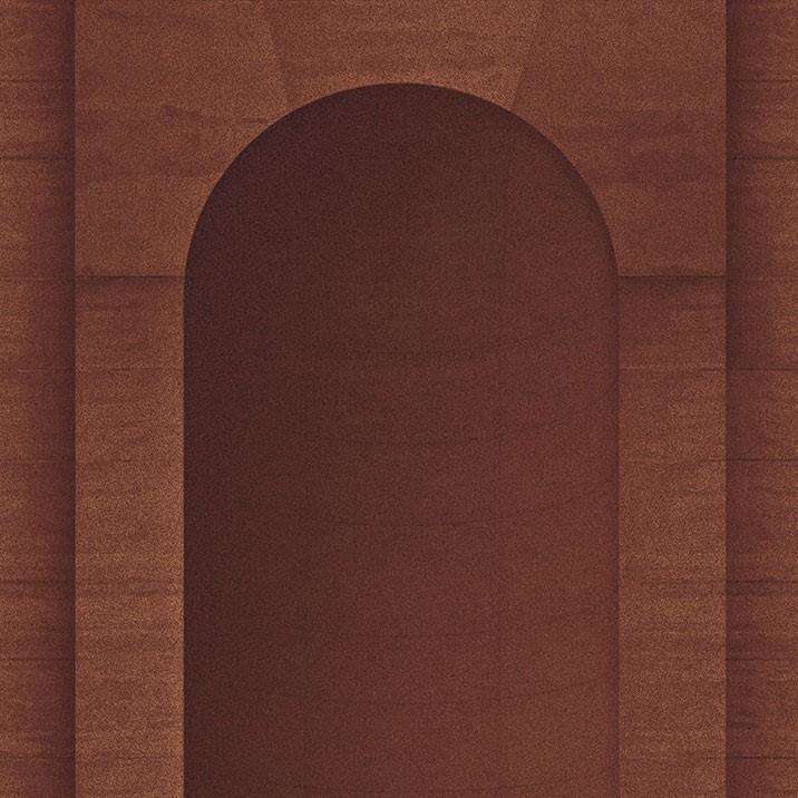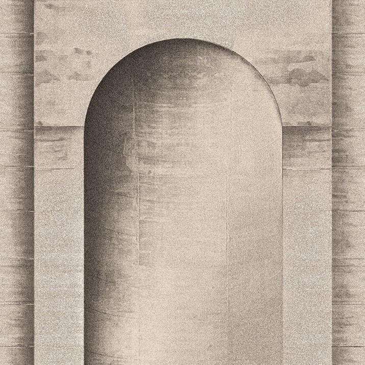 Esedra wallpaper from LondonArt wallpaper. This wallpaper features an arched niche in travertine, where the texture of limestone plays the leading role. A beautiful & optically effective wallpaper.