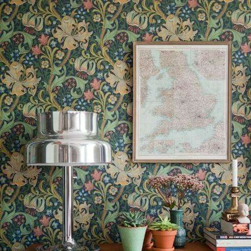 Golden Lily wallpaper by Morris & Co A historical wallpaper designed by JH Dearles in 1899. One of Morris's most famous wallpaper designs, entwined lily stems. Give character to your interior with this historical wallpaper.