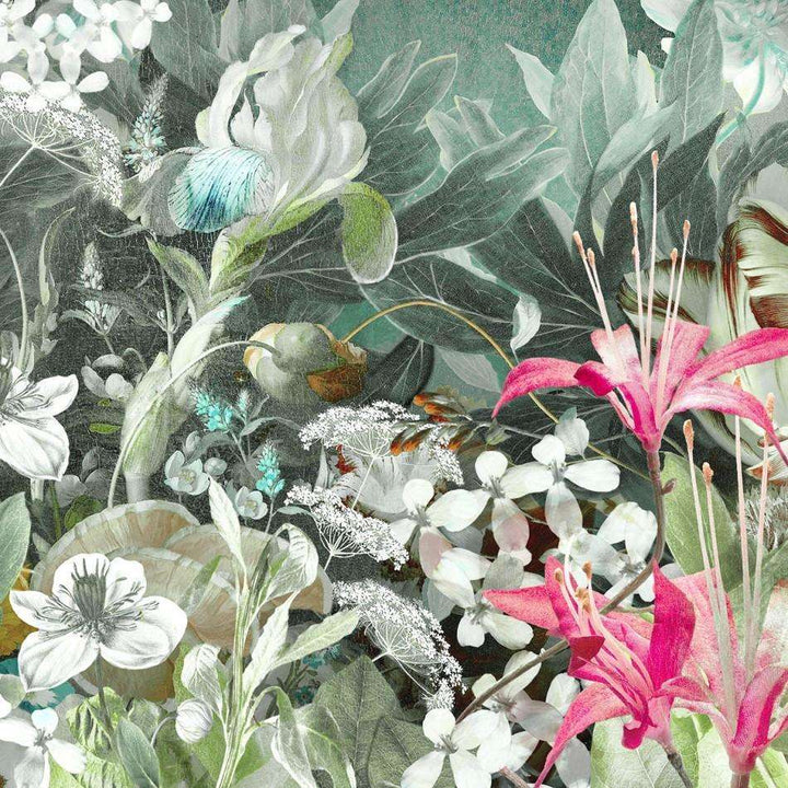 Havana wallpaper from LondonArt wallpaper by Marcel Wanders. This wallpaper is full of floral elements. Tulips and other plant forms create that natural landscape full of green tones and warm pink, yellow & orange.