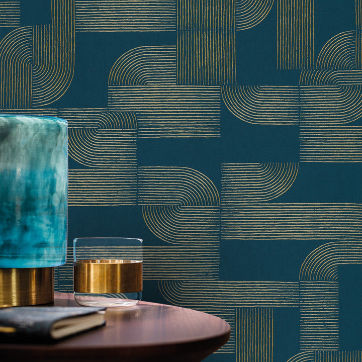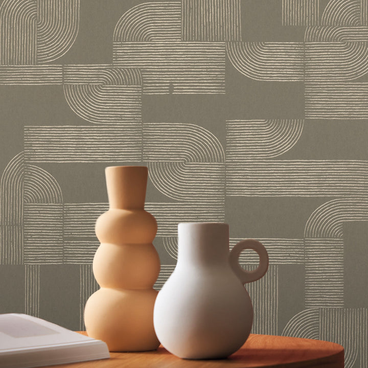 Hector wallpaper Casamance. This wallpaper has a geometric pattern full of curves. A retro vibe in a modern jacket. An atmospheric wallpaper! Wallpaper Hector Casamance Square Jasmin collection.