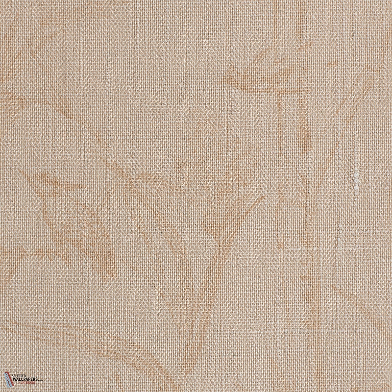 Idola Theatri Wall wallpaper Dedar. This linen wallpaper shows a design with long bamboo sticks, small birds and insects. A laminated jute full of texture. Wallpaper Idola Theatri Wall Dedar Wallcoverings.
