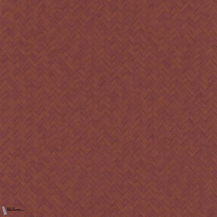 The Kagone wallpaper features a herringbone pattern that adds a touch of texture to the wall without being overpowering. The pattern seems inspired by woven natural materials like rattan or raffia, providing a warm and organic look.