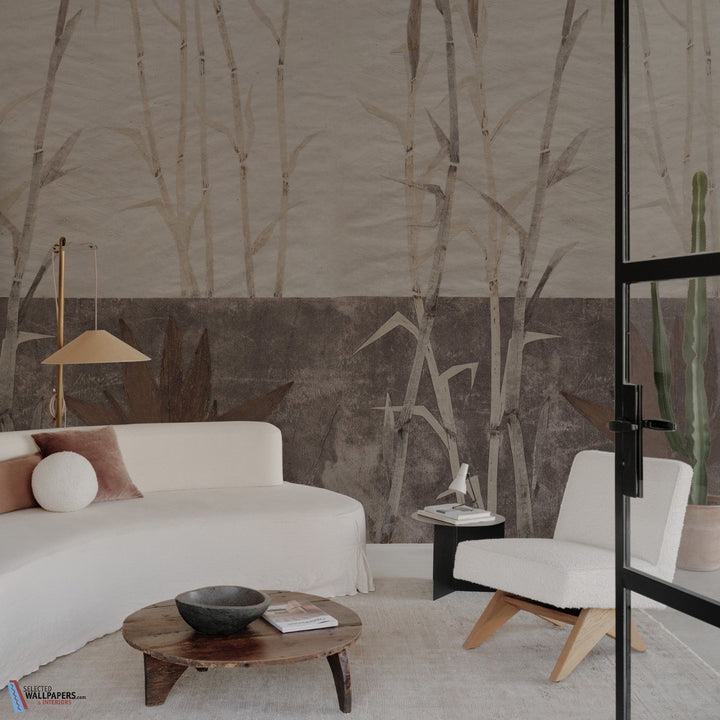 Koraju wallpaper Wall & Deco. This custom wallpaper shows a botanical design. A view along the bank with large plumes. Wallpaper Koraju Wall & Deco Contemporary Wallpaper collection 2024